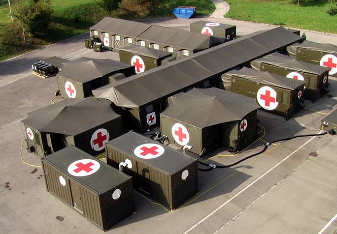 The changing nature of missions and operations from international crisis management to national and collective defence, new threats such as pandemics as well as environmentally challenging conditions require medical solutions to become highly mobile, modular, rapidly deployable, ruggedised, and lighter in weight whilst providing full functionality and the sufficient level of protection. Our solutions ensure the best medical care of the wounded, regardless of numbers, while at the same time, offering a safe and protected working environment for medical personnel.