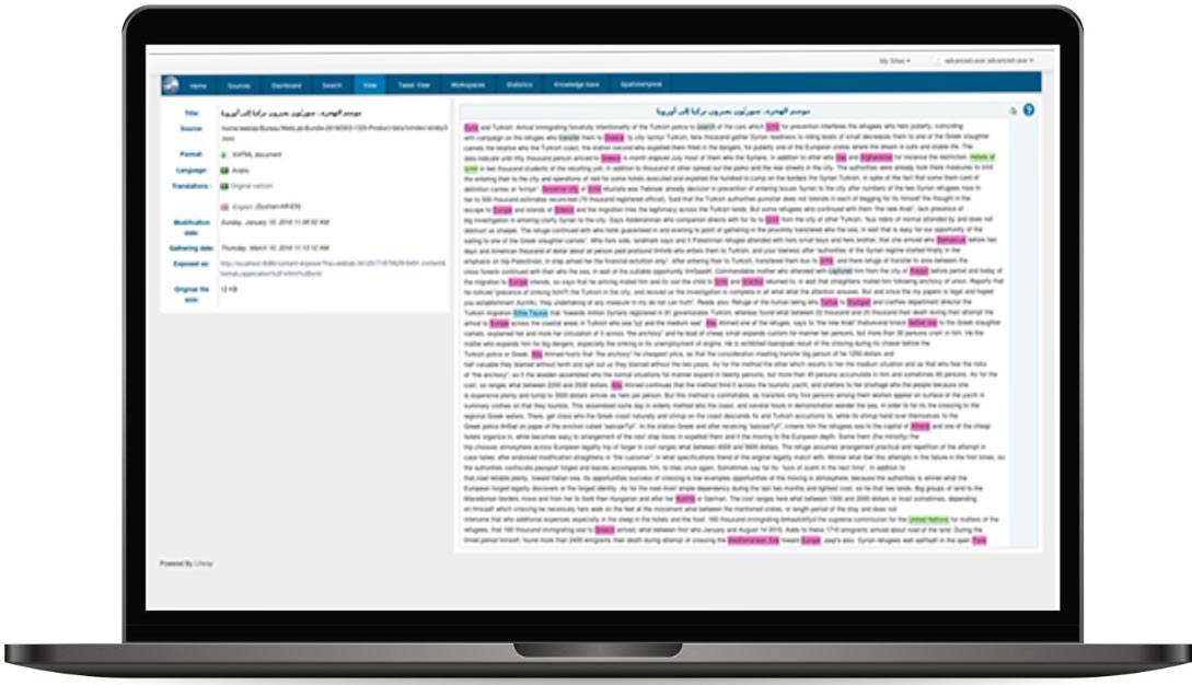Collecting viable and relevant information about suspicious parties is difficult when large amounts of unstructured data of various types circulate, originating from heterogeneous sources and often in multi-lingual forms.