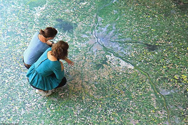 Installed on the floor, at over 45km², a huge SPOT 6/7 mosaic shows the French Loire-Atlantique region at a scale of 1:20,000. The image was unveiled on 30 May 2018 in the entrance hall of Loire-Atlantique Departmental Agency, a public engineering organisation offering multi-disciplinary expertise to build a quality living environment for the inhabitants of Loire-Atlantique.