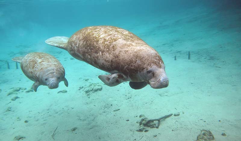 One of Florida’s most endangered species, the manatee, rely almost entirely on the extensive beds of seagrass and freshwater aquatic vegetation in the estuaries and freshwater lakes, springs and rivers. As the manatee’s primary food source, healthy and abundant SAV communities are a precondition to their survival – however Florida’s SAV communities are increasingly under threat, not least because of human disturbance and climate change. A record high 1,001 manatees died in 2021, largely due to starvation caused by loss and degradation of aquatic vegetation. As a result, Florida Wildlife officials started a campaign feeding starving manatees with lettuce in early 2022.