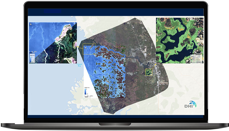 DHI is among the world’s leading knowledge and technology providers within satellite remote sensing for hydrological and marine monitoring and risk management applications. With more than 20 years of experience in satellite remote sensing, DHI provides a leading satellite derived bathymetry (SDB) service, available through the Bathymetrics Data Portal, as well as user-friendly and scalable services to map and monitor submerged aquatic vegetation.
