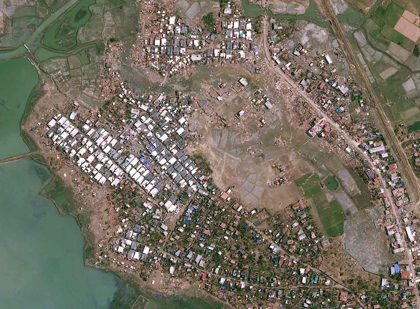 Rhakine State in West Myanmar was hit by the Cyclone Mocha on Sunday, 14th May. The aftermath of the hurricane in the city of Sittwe and along the coast can be observed in the following two before-and-after Pléiades Neo images.