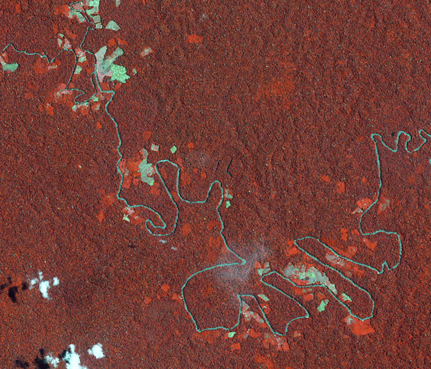 Below are some examples of concrete deforested areas visualized on SPOT 5 and SPOT 6/7 images.
